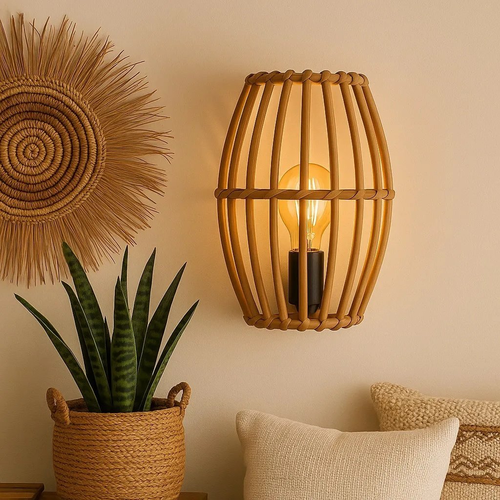 3. Design: Modern wall light with a natural bamboo frame